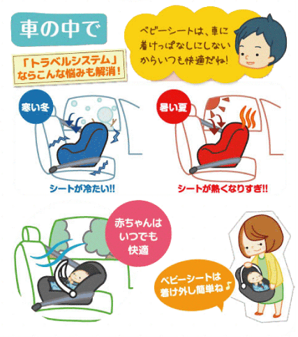 友達のお子さんは、車の中で寝てしまい、乗せ降ろしの時はいつもぐずって大変だとこぼしていたので「」トラベルシステムなら眠ったまま着け外がしできるのですっごく便利よ」って教えてあげました。