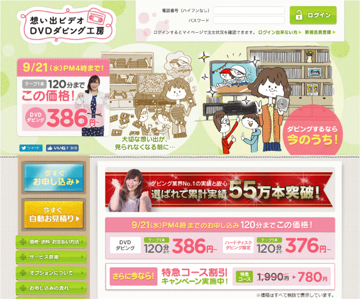 「想い出ビデオDVDダビング工房」の自動見積りはこちら