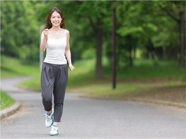 このような歩き方で軽く汗をかく程度の速さを保てば、運動効果はより高まります。